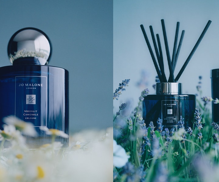 Tranquil, unwinding fragrances to enhance your night-time ritual. Lavender & Moonflower and Moonlit Camomile.